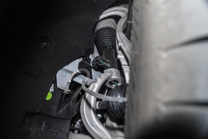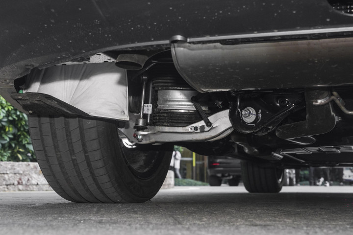 底盘扎实,悬挂系统为前双叉臂后五连杆独立结构,标配CCD连续可变阻尼电控减振器,Ultra版开始配备双腔空悬,支持40至-65毫米之间的智能调节,配有“魔毯”预扫描功能,可提前识别和扫描路况并调整阻尼,智能调节悬架软硬和高低。悬架在处理路面颠簸时富有韧性,能过滤掉影响乘坐舒适性的细碎震动,同时在过弯时提供充足的支撑,保障行驶的稳定感和高级感。三电机版还配有后轮转向技术,转弯半径4.98米,城区窄路掉头或窄位泊车比较方便。